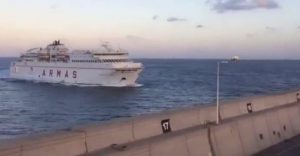 O “Volcán de Tamasite” da companhia Armas terá sofrido uma avaria nos motores quando saia do porto La Luz com destino a Tenerife. Fotos: DR