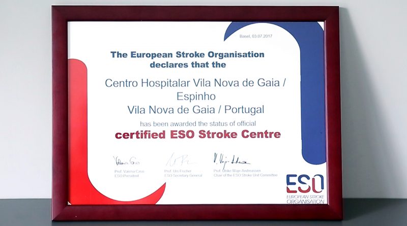 A European Stroke Organisation (ESO) atribuiu o estatuto de “First Certified ESO Stroke Centre” à Unidade de AVC do Centro Hospitalar De Vila Nova De Gaia/Espinho, coordenada pelo Dr. Miguel Veloso, bem como à Unidade de Neurorradiologia de Intervenção, liderada pelo Dr. Manuel Ribeiro. Portugal é, assim, o primeiro país da Europa a ter um centro certificado de tratamento de AVCs, primeira causa de mortalidade e incapacidade no nosso País.
