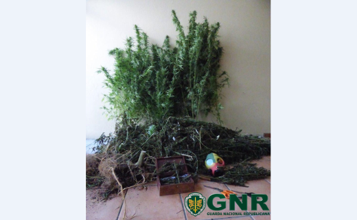 No âmbito de diligências de inquérito, e em cumprimento de um mandado de busca domiciliária, foi apreendido: 10,8 quilos de folhas secas de cannabis; Três plantas de cannabis sativa.